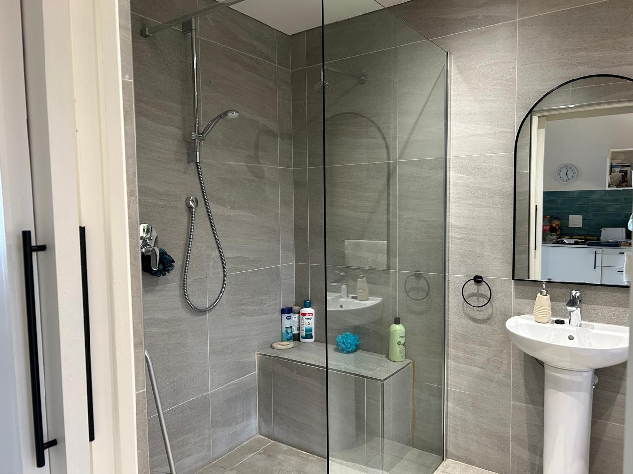 The unit features a modern, wheelchair-friendly bathroom with an easy-access shower, designed for comfort and mobility. The open-plan living and sleeping area is bright and freshly updated, creating a welcoming and low-maintenance home.